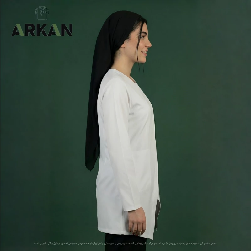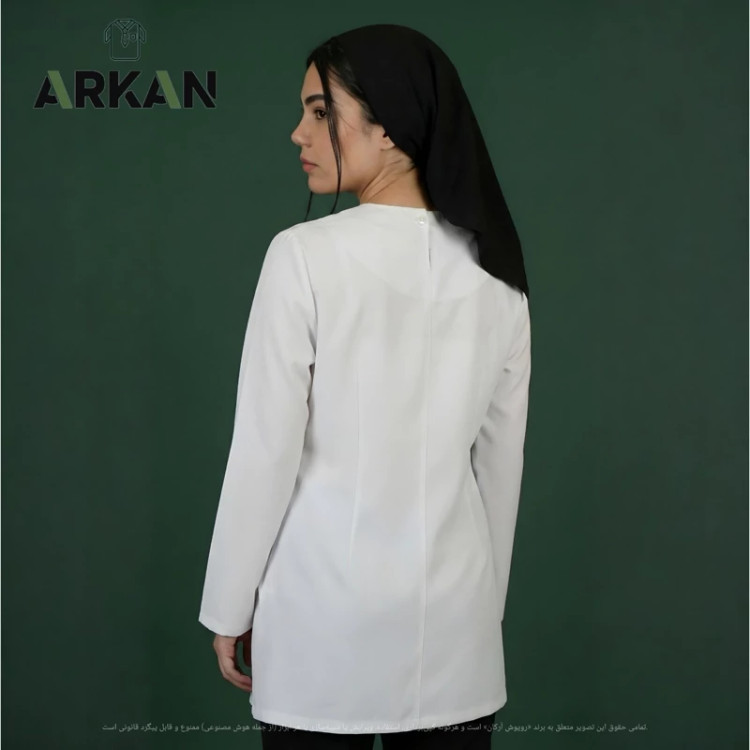 روپوش پزشکی سارا یک انتخاب مینیمال و ظریف برای کادر درمان است. طراحی گرد بسته و دکمه مخفی پشت گردن، هماهنگی کاملی بین سادگی و حرفهای بودن ایجاد میکند. این مدل، با پارچهی مقاوم کجراه و دوخت دقیق، مناسب محیطهای کاری طولانیمدت است و در عین سادگی، جلوهای مدرن و تمیز دارد. سارا، روپوشی است آرام، ساده و کاملاً همخط با فلسفهی کیفیت و صداقت برند Arkan.