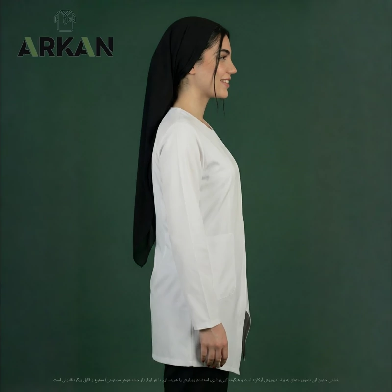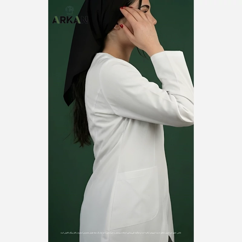 روپوش پزشکی زنانه بارداری مدل رها آرکان – پارچه کجراه