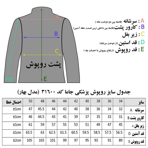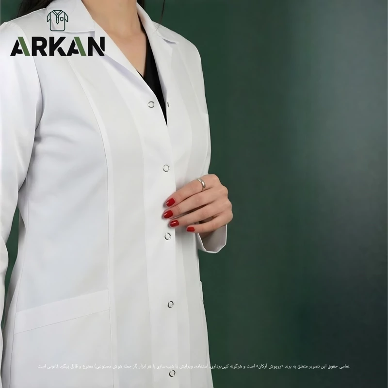 **توضیحات محصول – روپوش پزشکی مدل بهار (دکمه فشاری استیل ضدزنگ)** • **جنس پارچه:** کجراه درجهیک - مقاوم - ایستایی عالی - مناسب استفاده طولانی در محیطهای درمانی • **نوع بستهشدن:** دکمه فشاری **استیل ضدزنگ** (کیفیت بالا، دوام طولانی) • **سایزبندی:** 34 تا 50 • **ویژگیهای طراحی:** - **برش عصایی از جلو و پشت** برای فرمدهی دقیق و فیت حرفهای - **دارای بند پشت** جهت تنظیم بهتر و جمع شدن کمر - **یک جیب بالا** مناسب گوشی یا خودکار - **دو جیب پایین** برای وسایل کاربردی روزانه - دوخت صنعتی، تمیز و ماندگار - حفظ رنگ و فرم پس از شستوشوی مکرر - مناسب پزشکان، پرستاران، دندانپزشکان، کلینیکها و مراکز زیبایی ---------------------------------------------------- **خدمات ویژه ARKAN** 🖨️ چاپ اختصاصی لوگو و نام برند شما 📞 پشتیبانی 24 ساعته 🚚 ارسال سریع به سراسر ایران ✅ پارچه مرغوب و ماندگار 💯 رضایت مشتریان، اولویت ماست ---------------------------------------------------- ✨ آرکان، همراه همیشگی شما در محیط کار ✨