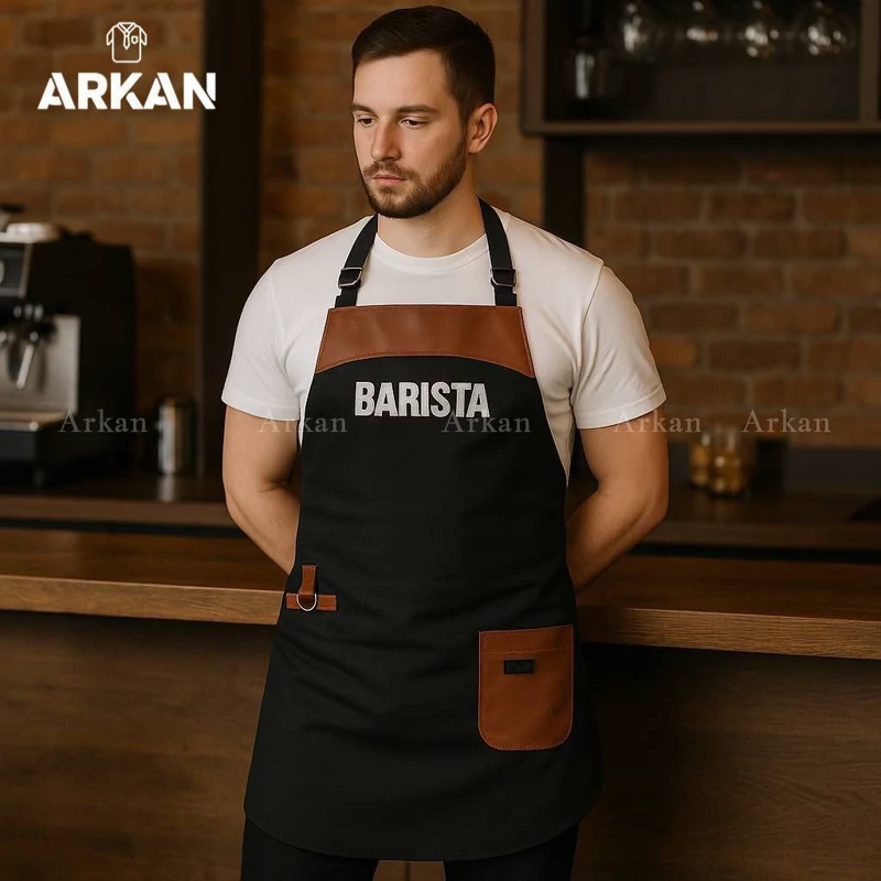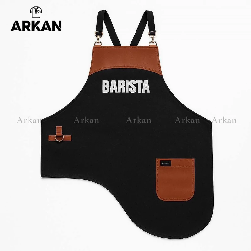 پیشبند باریستا هلالی آرکان، انتخابی حرفهای و شیک برای کافه، رستوران و محیطهای کاری خاص. دوختهشده از پارچه لی مقاوم با طراحی هلالی جذاب و کاربردی. فریسایز و مناسب تمام اندامها. مناسب استفاده روزمره و محیطهای پرکار.