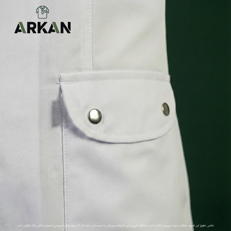 - **دکمه استیل ضدزنگ** برای استحکام بیشتر در ناحیه بالایی لباس