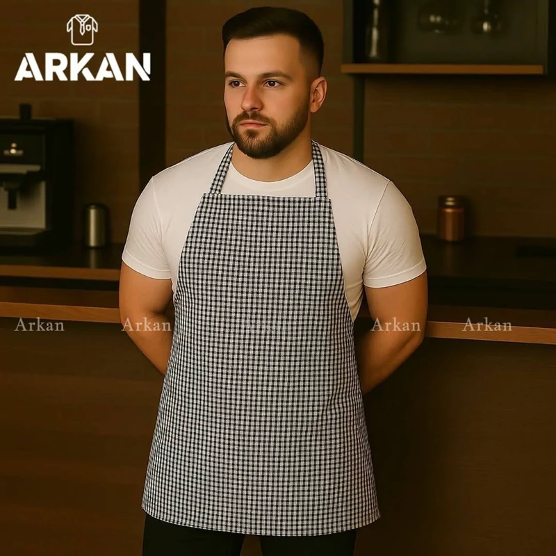 پیشبند پارچهای آرکان، مناسب محیط کار، آشپزخانه، کافیشاپ و استفاده روزمره. تولید شده از پارچه **تترون باکیفیت**، سبک و ماندگار. طراحی **فریسایز** و مناسب تمام اندامها. امکان چاپ لوگو و برند اختصاصی برای مجموعهها و سازمانها.