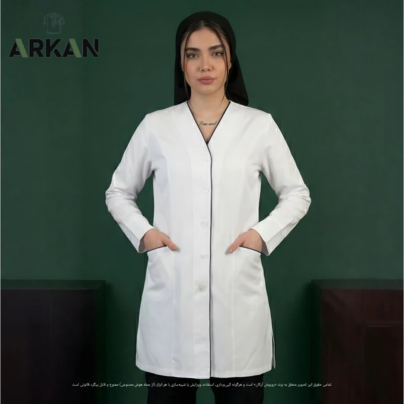 روپوش پزشکی زنانه مدل صبا نوار سورمه ای