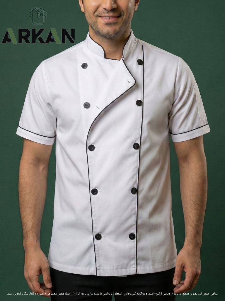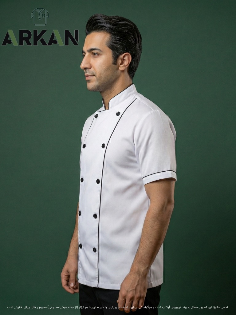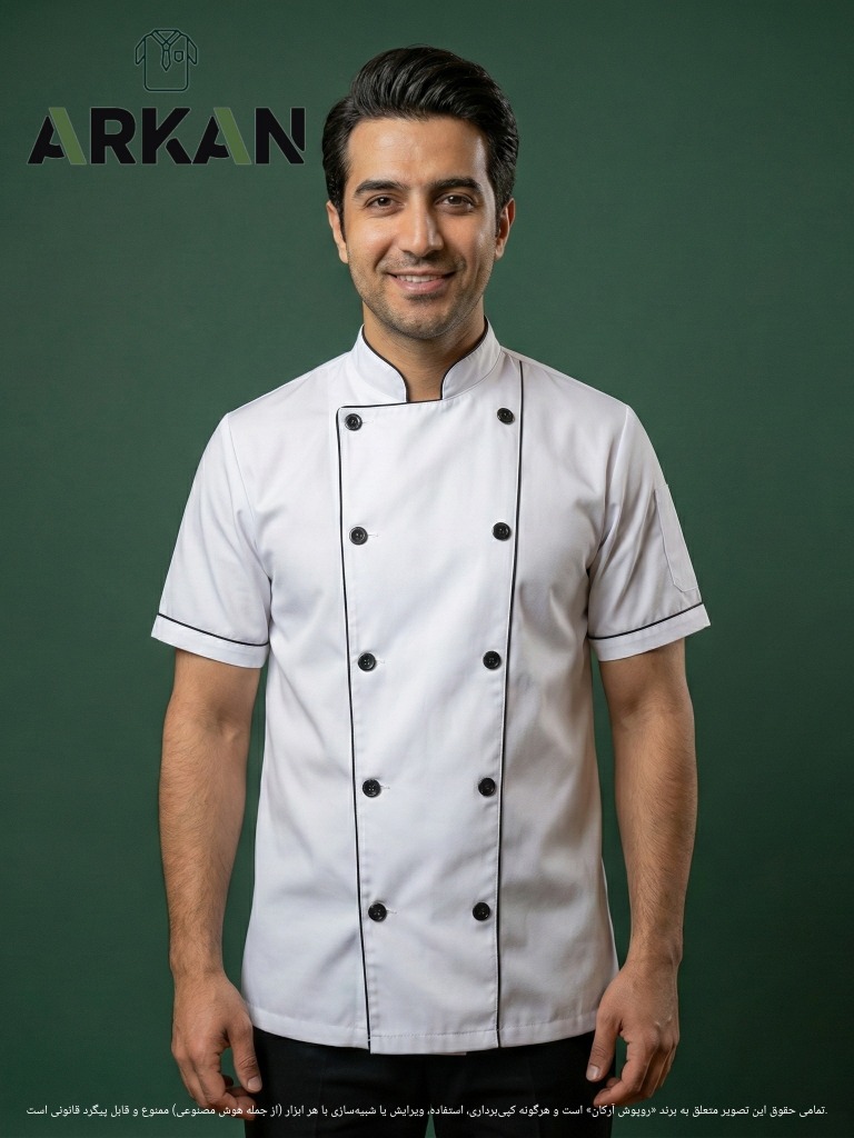 با افتخار، محصول جدید برند Arkan، روپوش رستورانی مدل پارسا سفید را معرفی میکنیم! این روپوش با طراحی زیبا و دلپسند، به آشپزخانه حرفهای شما جلوهای خاص میبخشد و به جذب مشتری کمک شایانی میکند.
